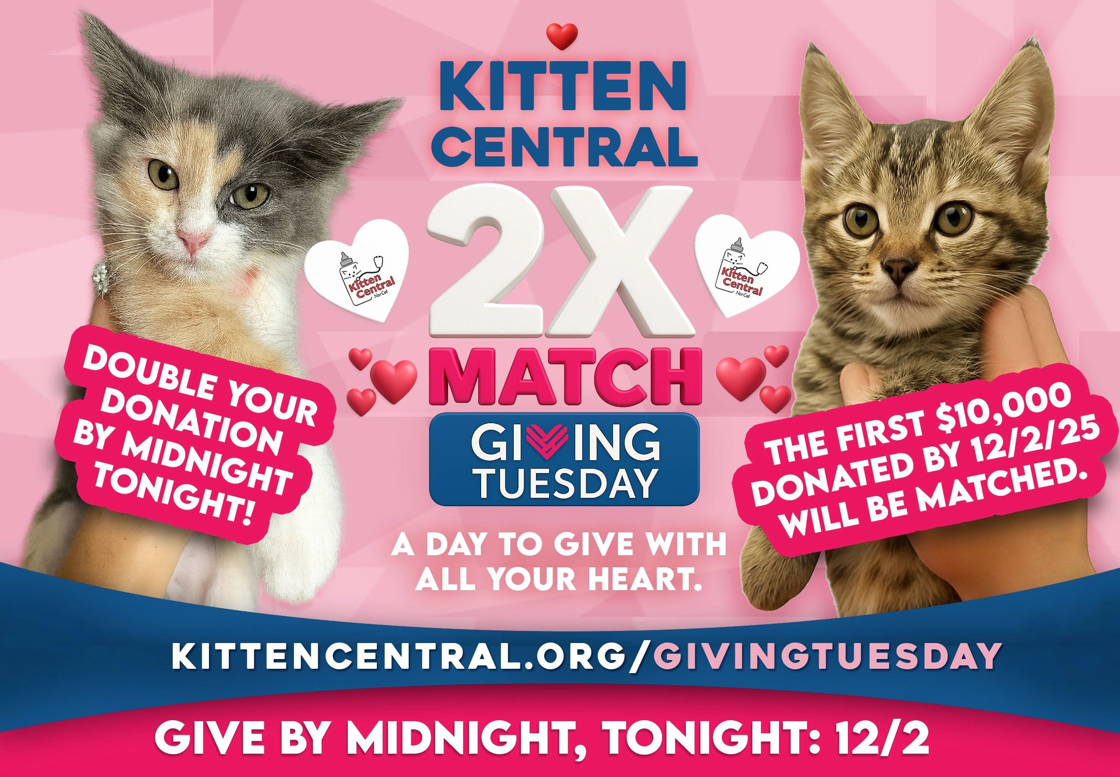 #GivingTuesday is a day to give with all your heart. The first $10,000 donated by 12/2/2025 will be matched by generous Kitten Central donors.